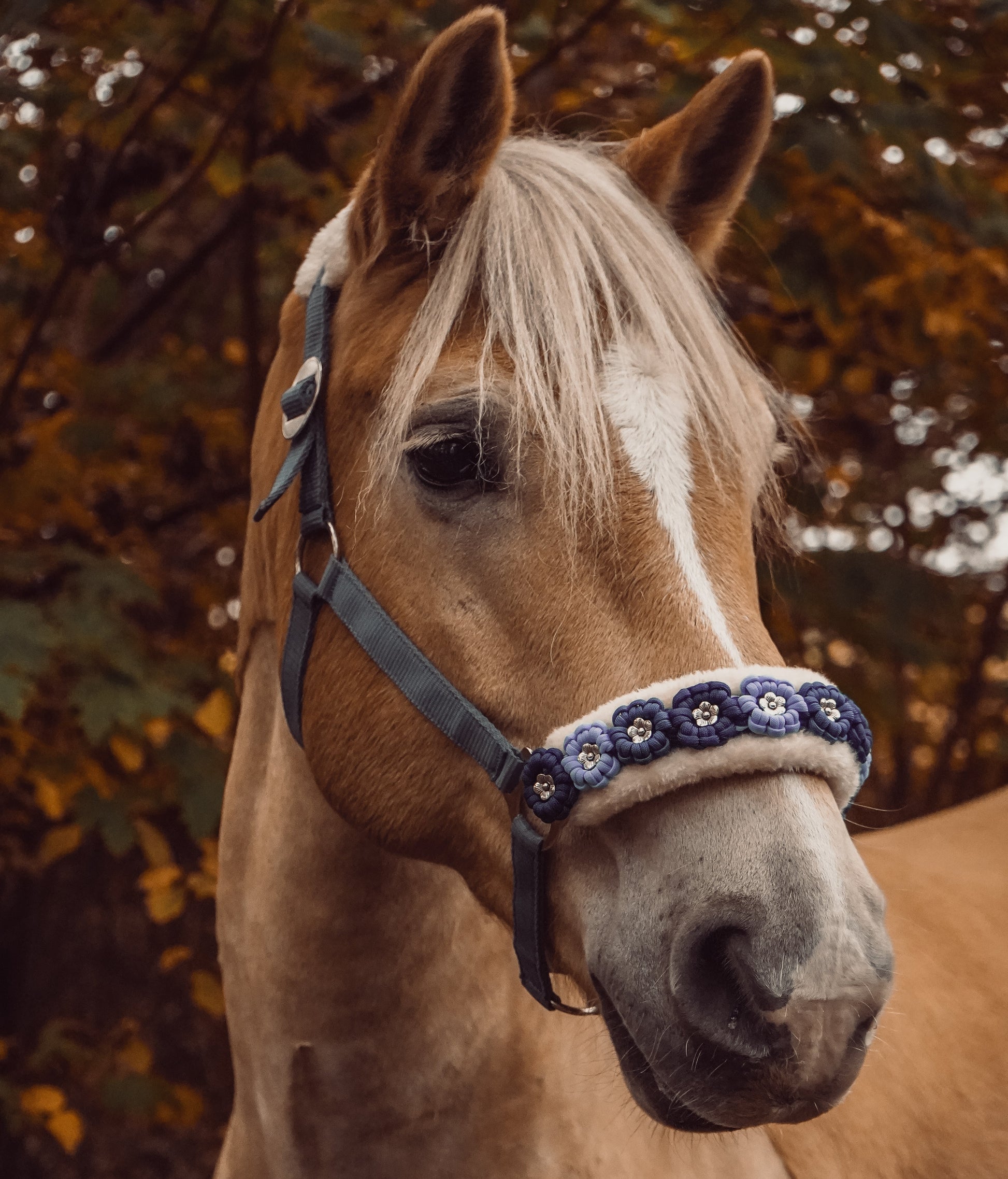 Blumen Halfter – Blau mit Teddyfleece (wechselbar)